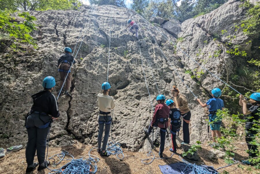 C’est le grand jour ! Les jeunes feront leurs premiers pas en falaise école sur des voies de 10 à 30 mètres et feront en toute sécurité le plein de sensations. Les sites que nous choisissons sont à l’ombre en plein été et au soleil en hiver 😉